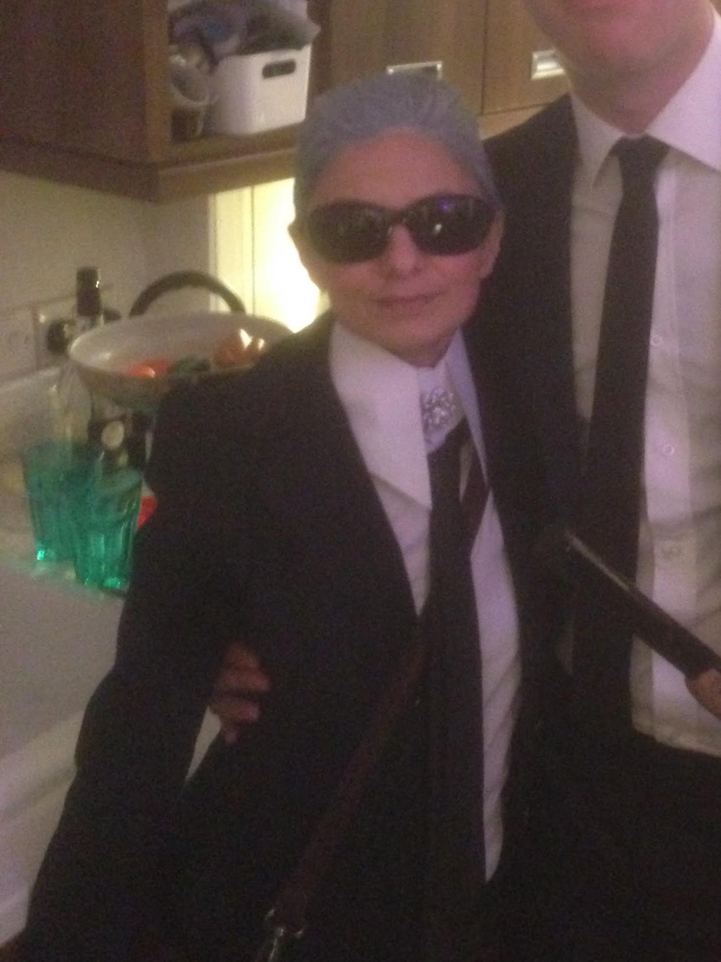 I love Karl! I even dressed up as Mr Lagerfeld for a “Come as someone famous beginning with the letter K” Party once. I hate spending money on fancy dress, and Karl Lagerfeld is a pretty easy costume… after a good old rummage in my ‘to sell on eBay’ cupboard, I had everything I needed, but spent £1.73 on 2 cans of white hairspray and bam! I was Karl: