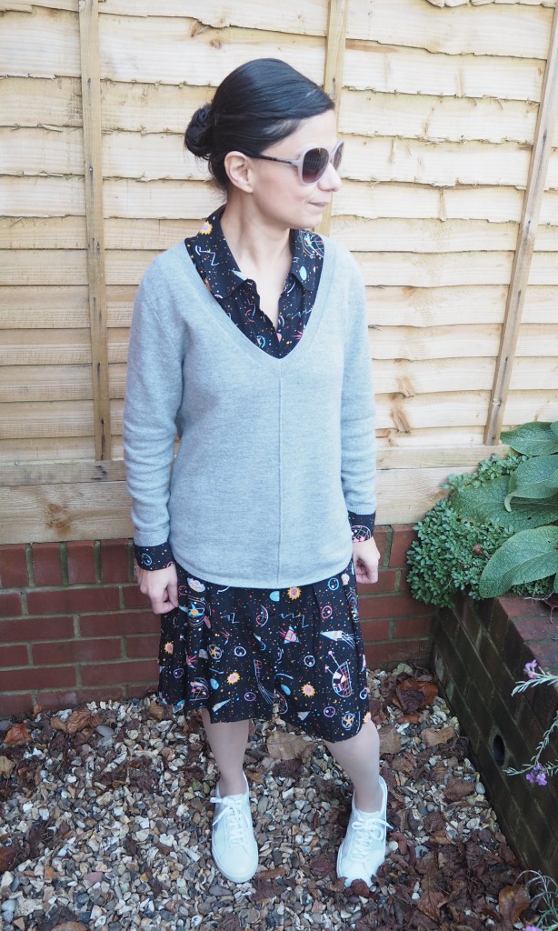 So, the dress is meant to be mid-thigh length, but I like that it was knee length on me.  It is a shirt dress and so has long sleeves which are of course (surprise, surprise…) slightly too long on me, but nothing that a turned up cuff couldn’t solve.