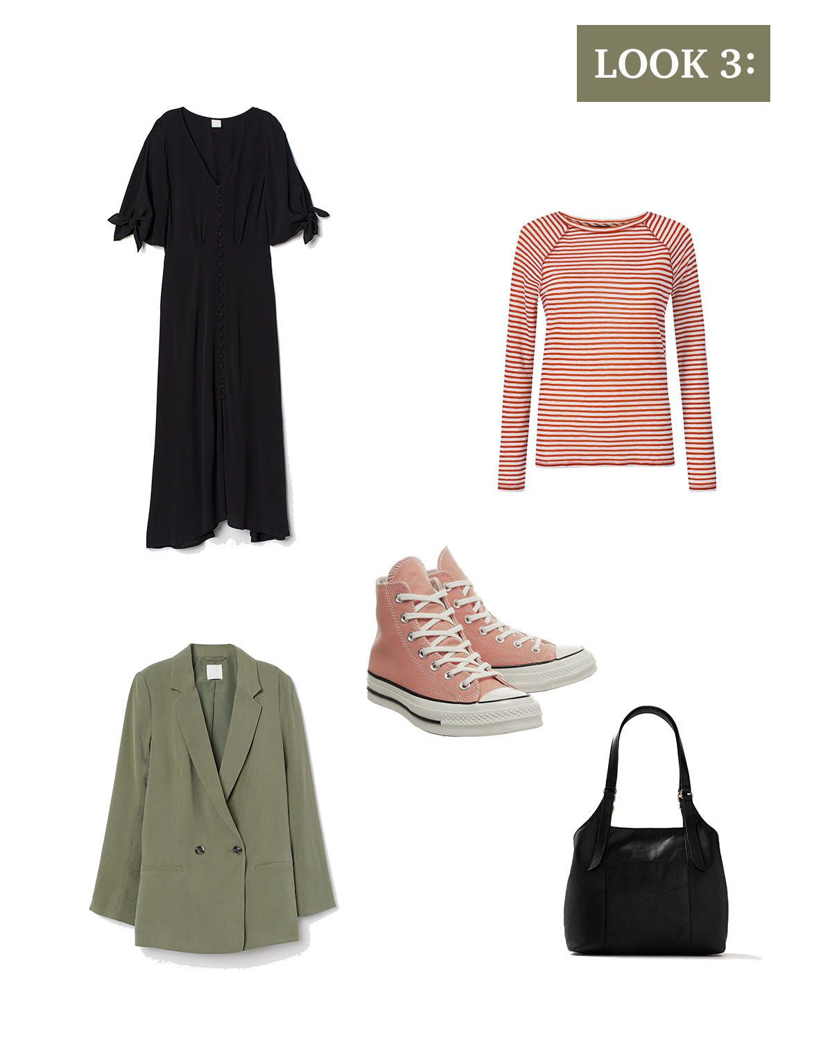 This paler khaki H&M Double Breasted Blazer (£24.99) worn over the top, unbuttoned and a simple black leather Hobo Bag (M&S, £89) would finish this outfit perfectly.