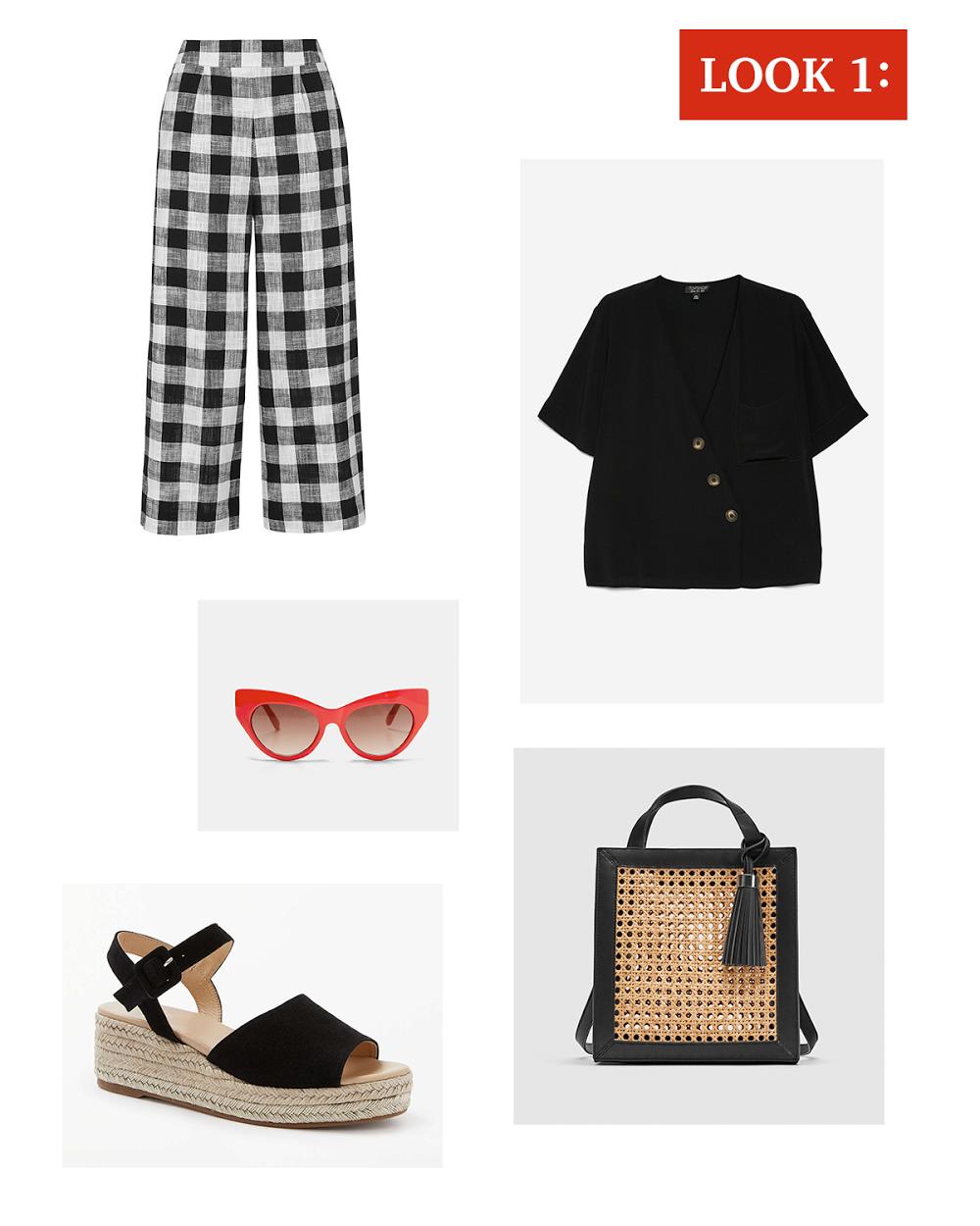 Something like this Topshop Asymmetric Blouse (£29) and balance the look out with a chunkier style sandal, something like these Modern Rarity Kalara Flatforms (£89)